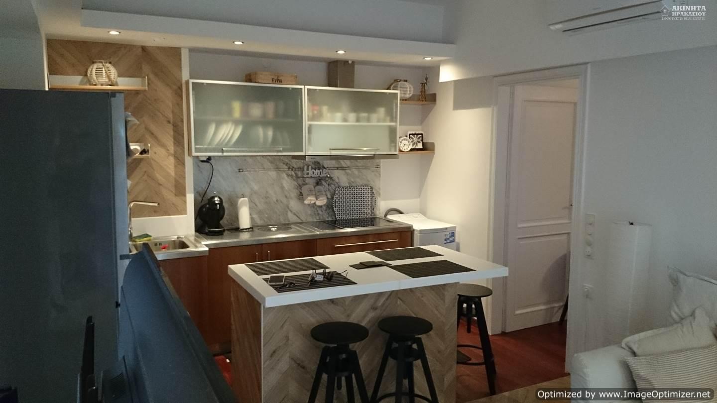 Ανακαινισμένο, πλήρως επιπλωμένο και ηλεκτρικά εξοπλισμένο 2,5αρι διαμέρισμα 55 τ.μ,προσόψεως, γωνιακό, ημιόροφος. Διαθέτει εννιαίο χώρο καθιστικό-κουζίνα, 2 υ/δ (το ένα μικρό) 1 λουτρό, μπαλκόνι, κουφώματα αλουμινίου, κλιματισμός. Τιμή ενοικίου 540 ευρώ